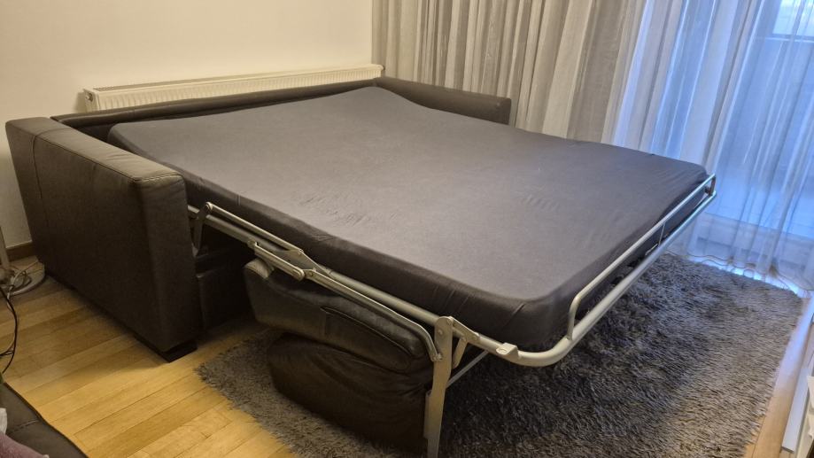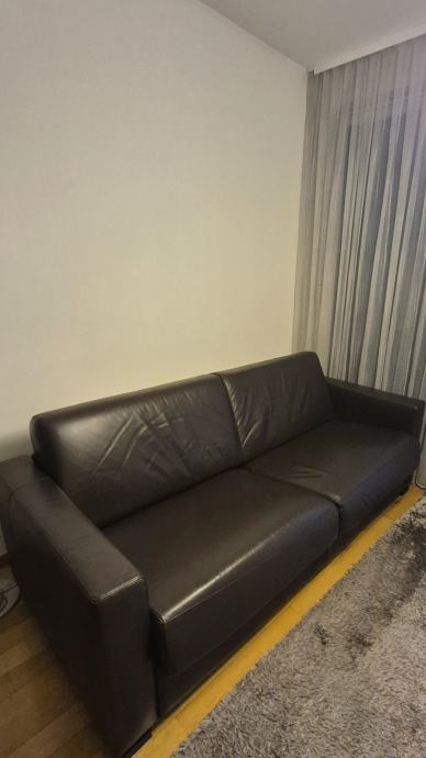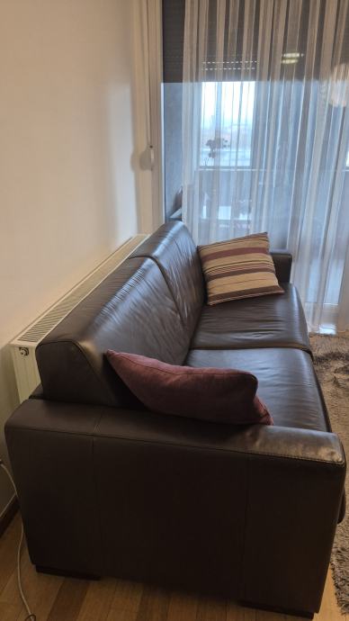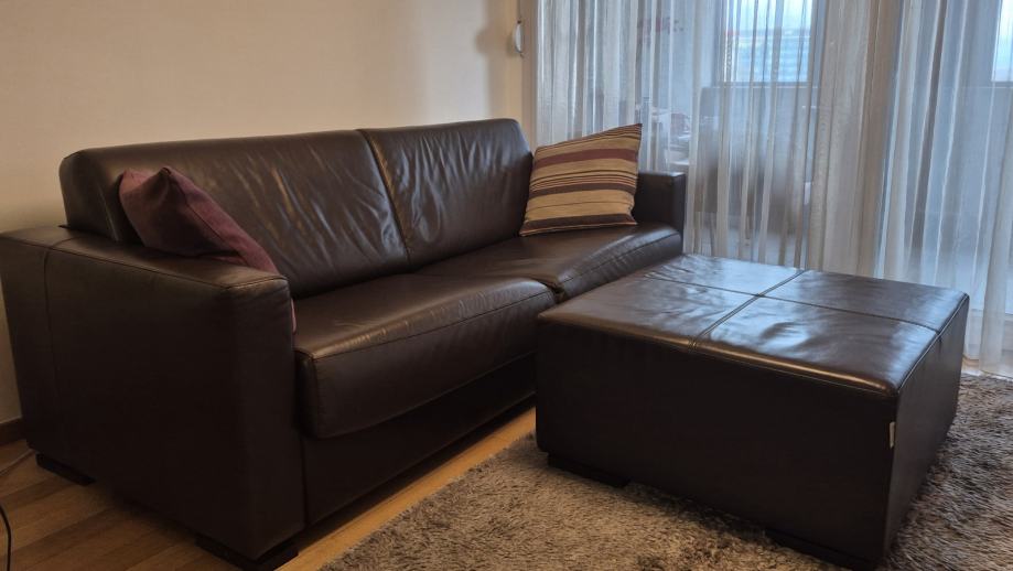 Na prodaju talijanski kožni trosjed na razvlačenje s tabureom stari 7 godina. Trosjed je dimenzija 212x92cm, a tabure 85x85cm. Namještaj je vrlo dobro očuvan, bez oštećenja. A mehanizam za razvlačenje je ispravan.
