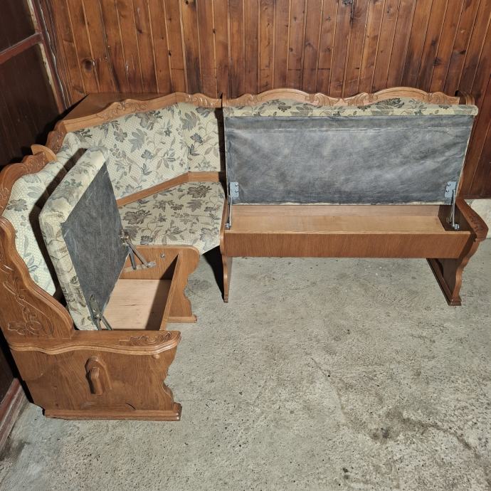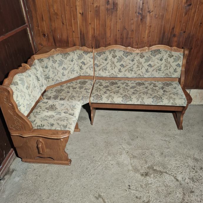 Masivna rustikalna drvena kutna klupa od hrasta.