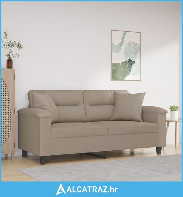 Dvosjed s jastucima smeđesivi 140 cm tkanina od mikrovlakana - NOVO
