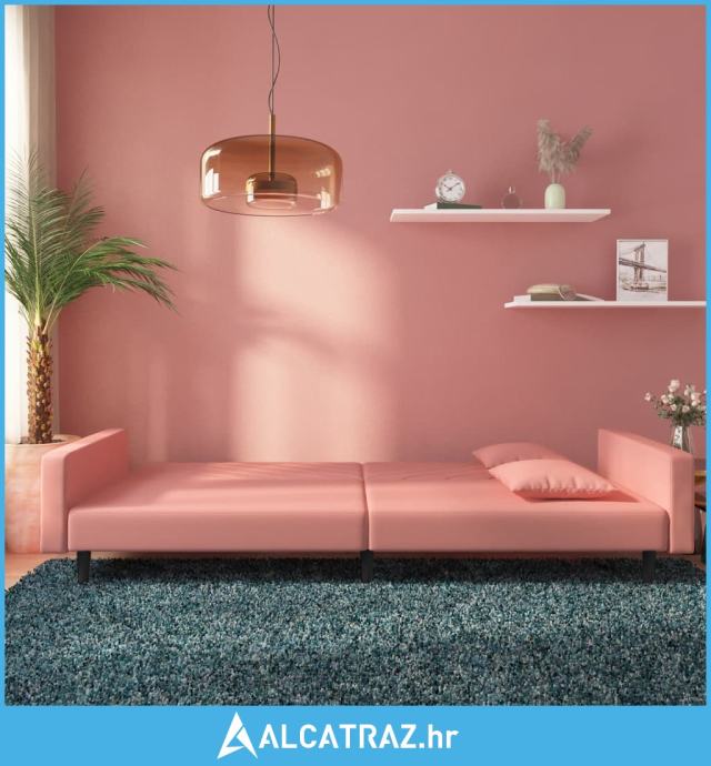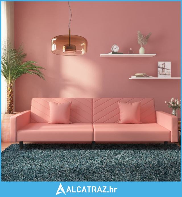 Dvosjed na razvlačenje s dva jastuka ružičasti baršunasti - NOVO