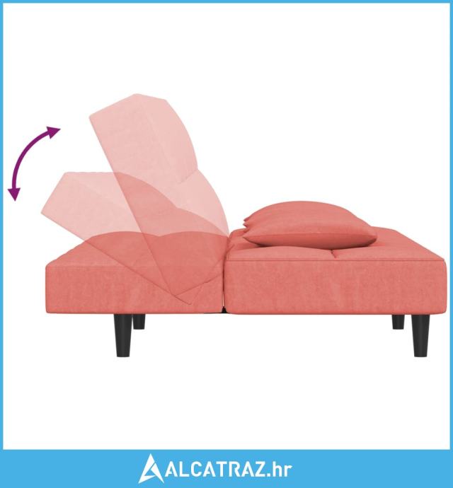 Dvosjed na razvlačenje s dva jastuka ružičasti baršunasti - NOVO