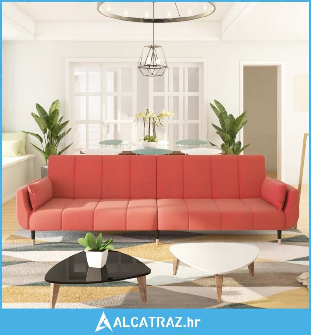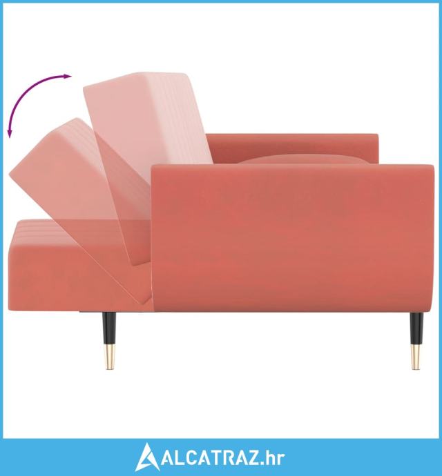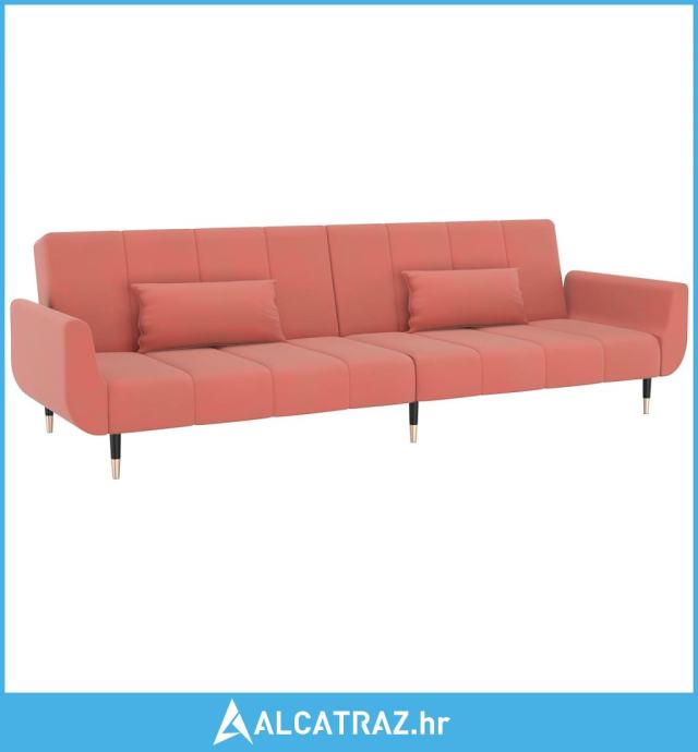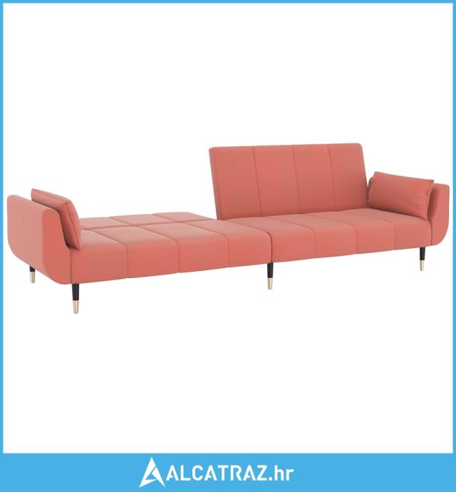 Dvosjed na razvlačenje s dva jastuka ružičasti baršunasti - NOVO