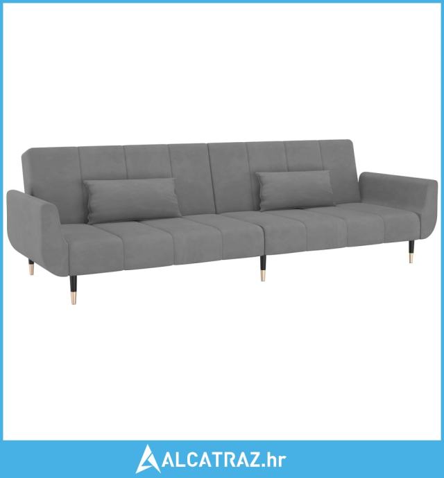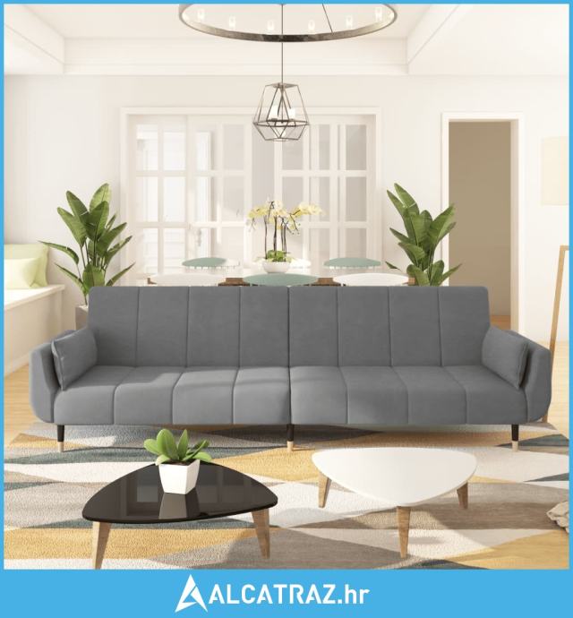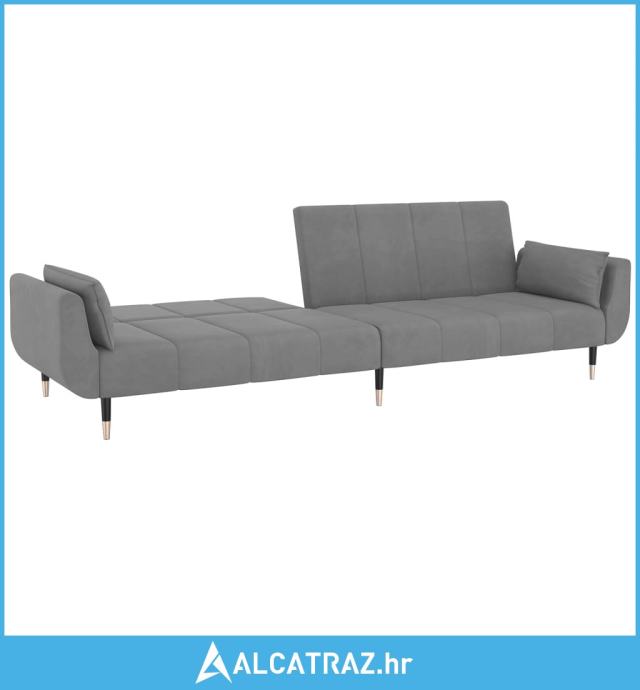 Dvosjed na razvlačenje s dva jastuka svjetlosivi baršunasti - NOVO