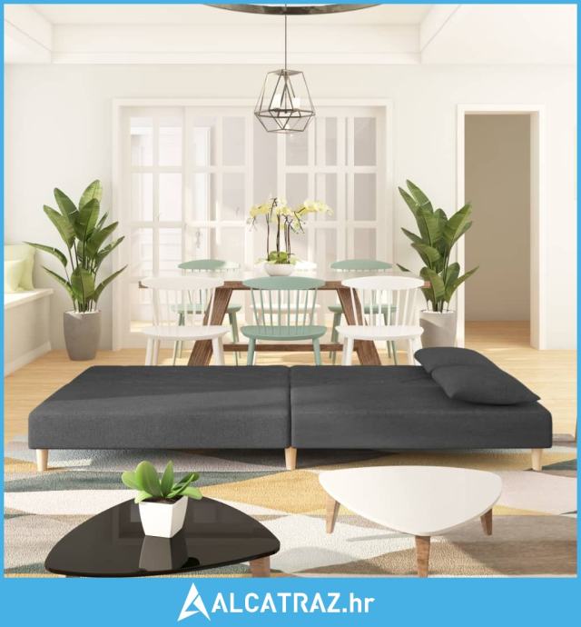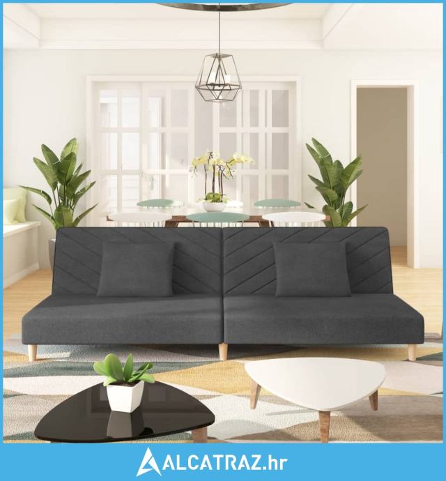 Dvosjed na razvlačenje s dva jastuka tamnosivi od tkanine - NOVO