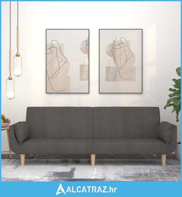 Dvosjed na razvlačenje s dva jastuka tamnosivi od tkanine - NOVO