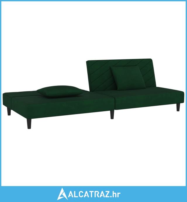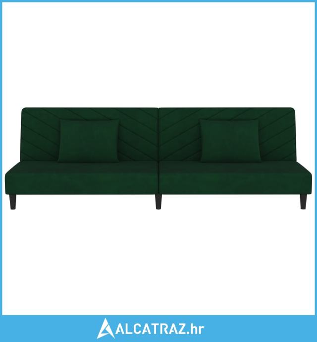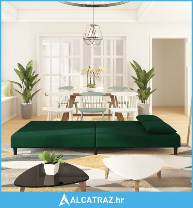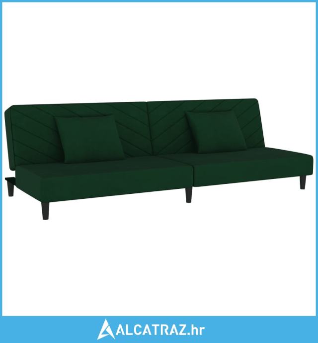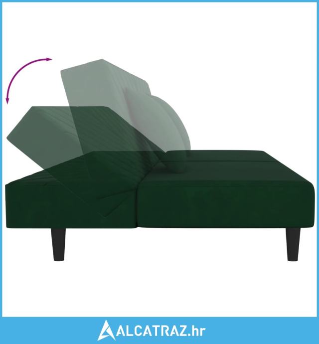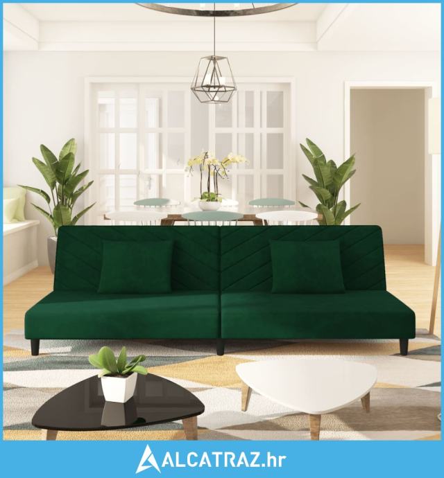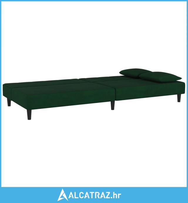 Dvosjed na razvlačenje s dva jastuka tamnozeleni baršunasti - NOVO
