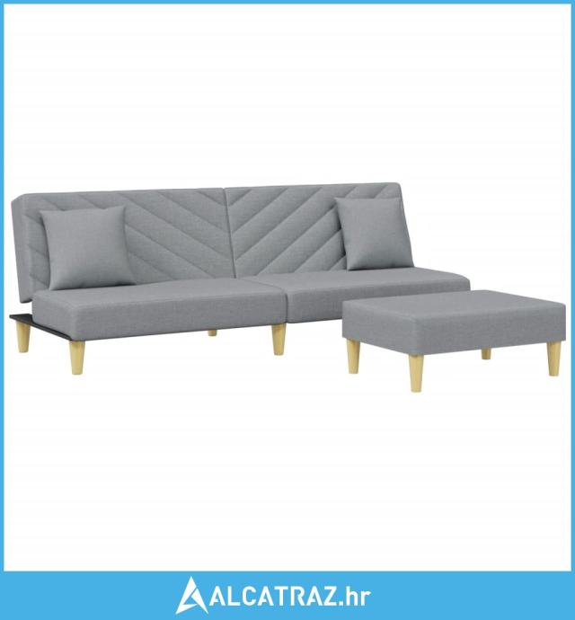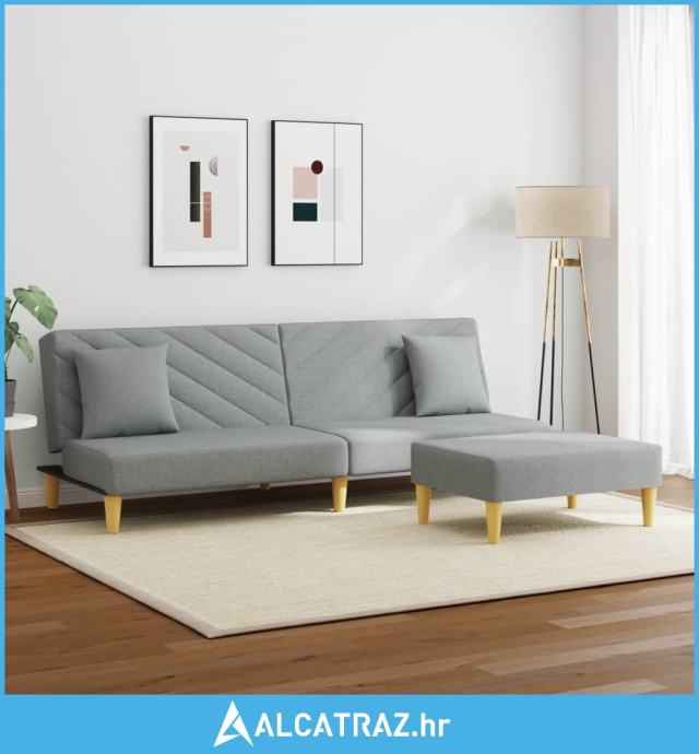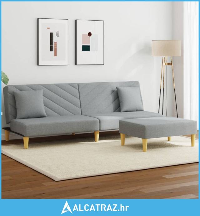 Dvosjed na razvlačenje jastuci i tabure svjetlosivi od tkanine - NOVO