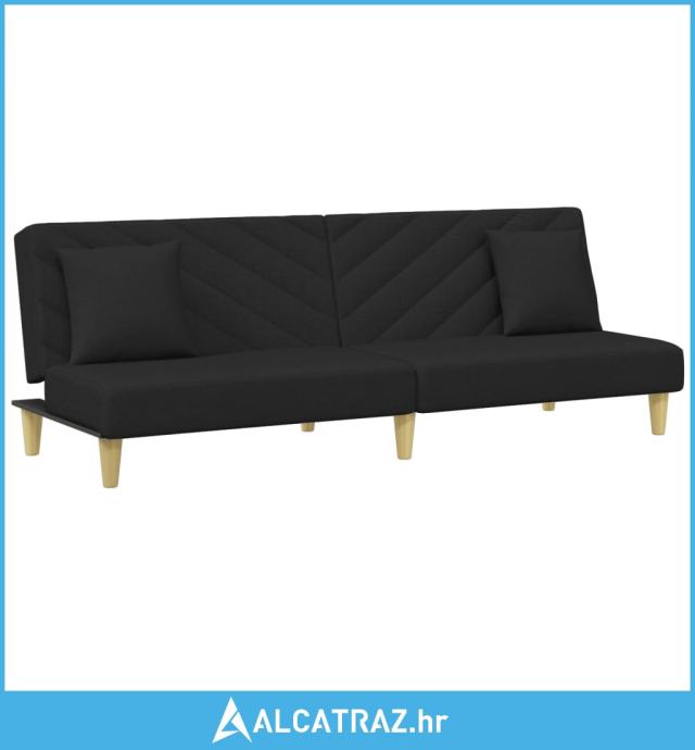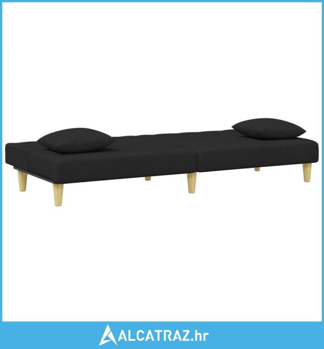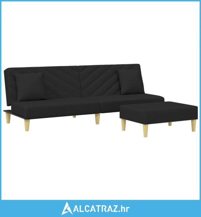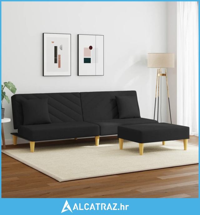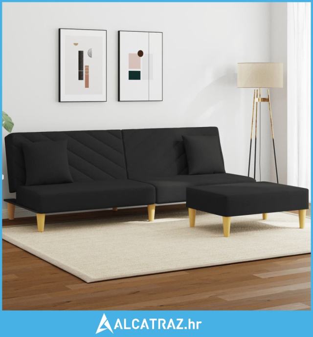 Dvosjed na razvlačenje s jastucima i tabureom crni od tkanine - NOVO