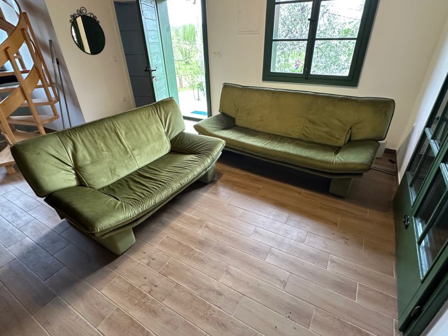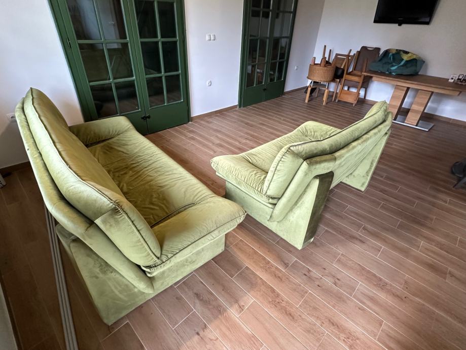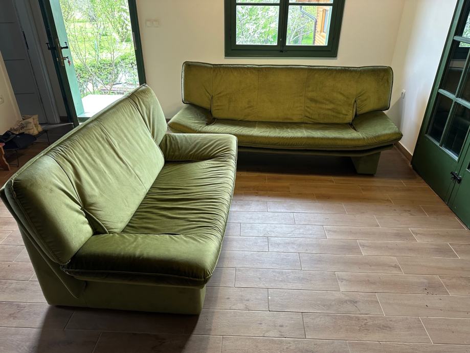 Prodaje se trosjed, dvosjed, blagovaonski stol, dva mala stolića i 4 stolice.