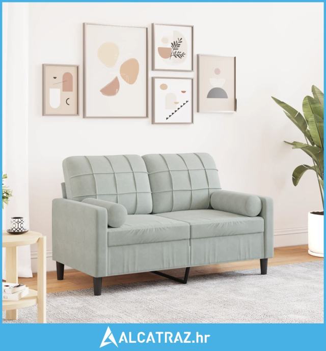 Dvosjed s ukrasnim jastucima svjetlosivi 120 cm baršunasti - NOVO