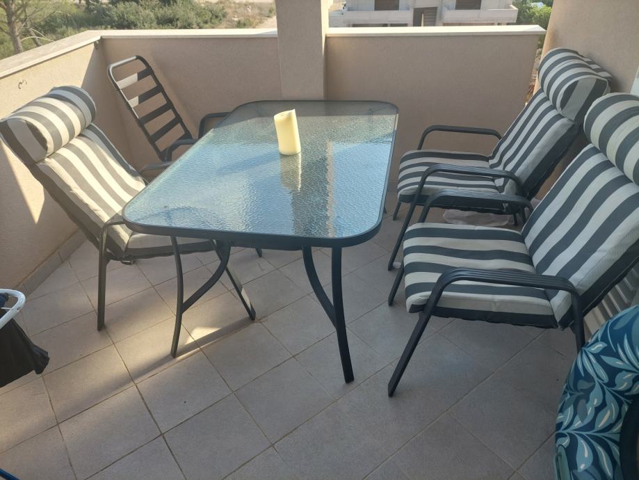 Prodajemo garnituru sa balkona, stol i 6 stolica. Sve stolice imaju presvlake kao sa slike. Ispravno je sve.