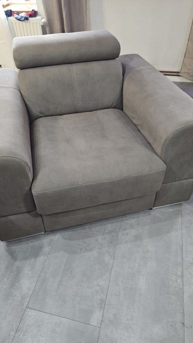 Prodajem garnituru za dnevni boravak.Trosjed, dvosjed, fotelja.Garnitura je očuvana bez ikakvih oštećenja.Trosjed je na razvlačenje dvosjed i fotelja fiksni.Glvonaslon je podesiv po želji za ugodniji položaj pri sjedenju.Trosjed dimenzije širina ukupno 240cm a sjedište 190cm.U razvučenim stanju za spavanje 190×160.Dvosjed dimenzije širina ukupno 190 a sjedište 140cm.Fotelja dimenzije ukupno 110cm a sjedište 60 cm.Garnitura je masivna i nama ipak prevelika za naš dnevni boravak to je razlog prodaje.
