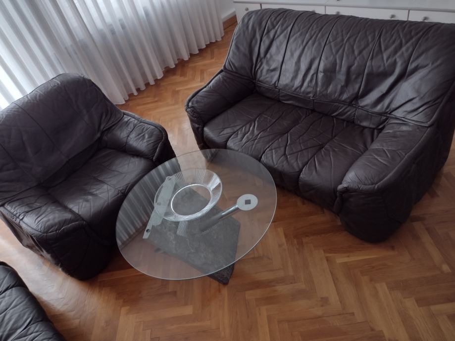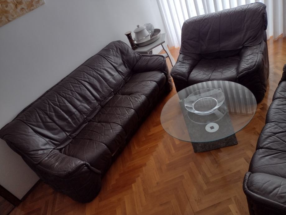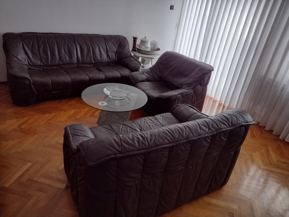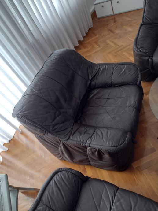 Kožna garnitura smeđa,trosjed,dvosjed i fotelja
