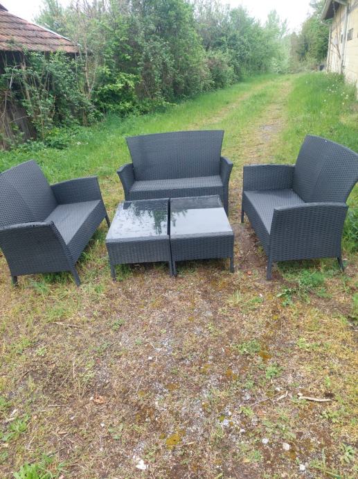 Prodajem komplet od 3 spojena dvosjeda izrađena od kvalitetnog crnog wicker materijala, te 2 mala stolića s gornjom staklenom pločom.