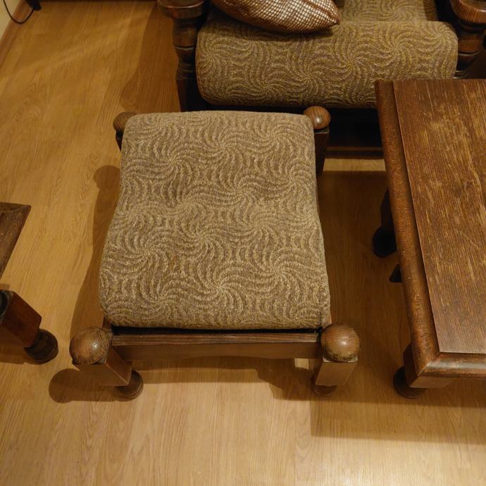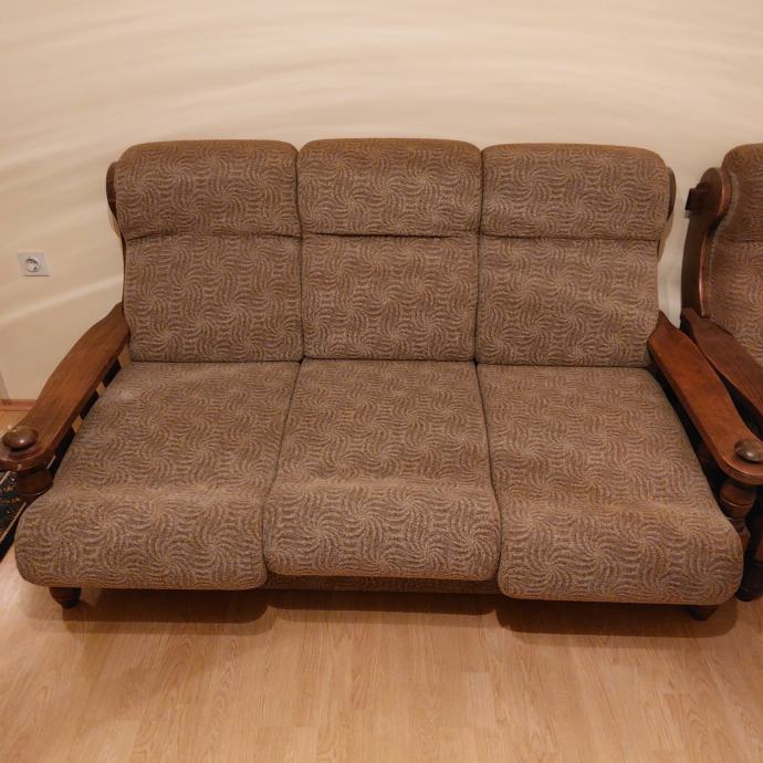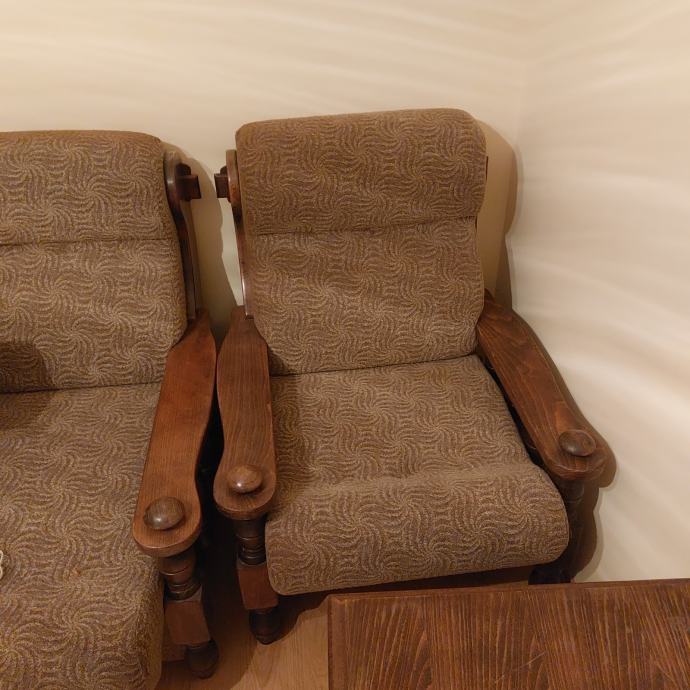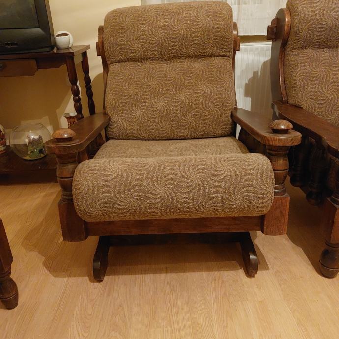 Prodajem trosjed, dvije fotelje, fotelja - njihaljka, tabure, stolić 60x110cm i stolić 60x60cm.