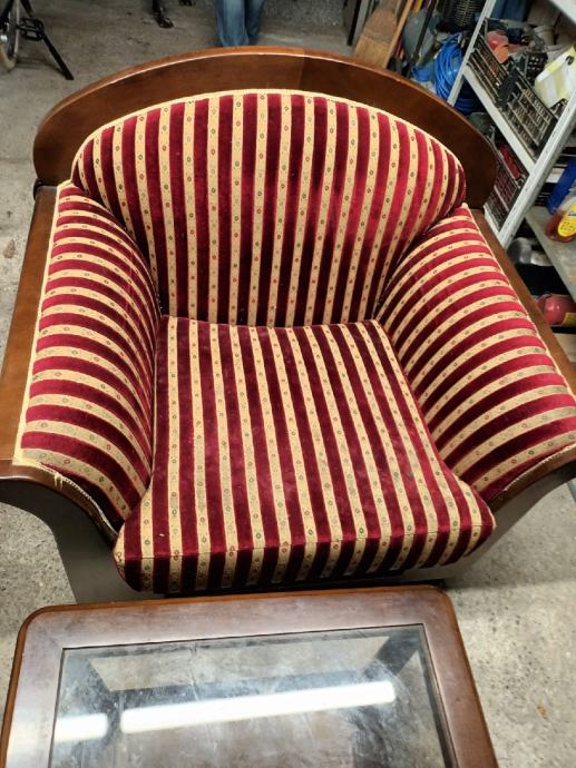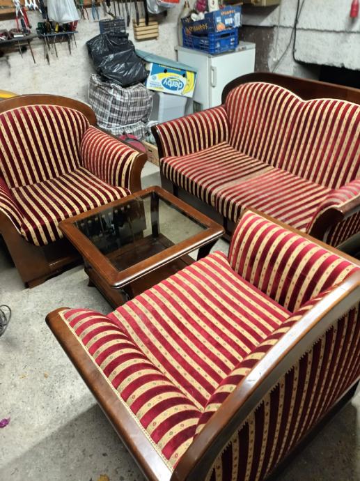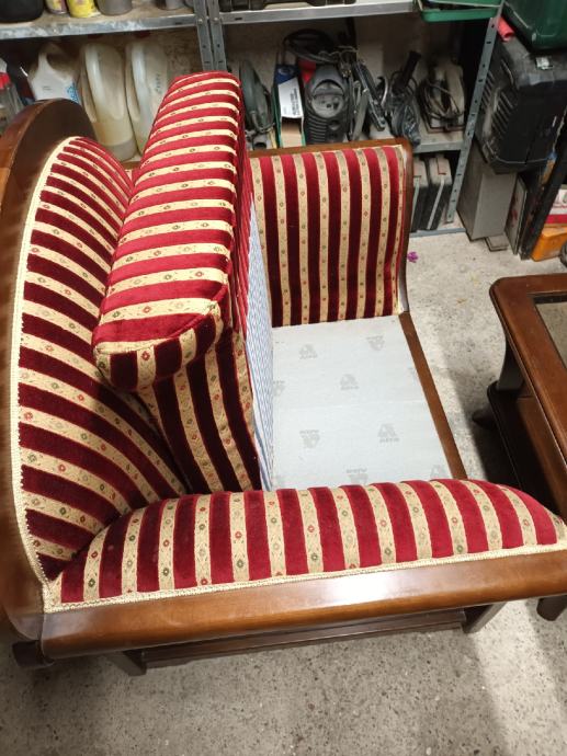 Prodajem garnituru za sjedenje dvosjed D155×70×V42, dvije fotelje 96×70,stolic 64×64 V45 Visina naslona zadnja strana91cm Sve je puno drvo Upitati na 098 230 113
