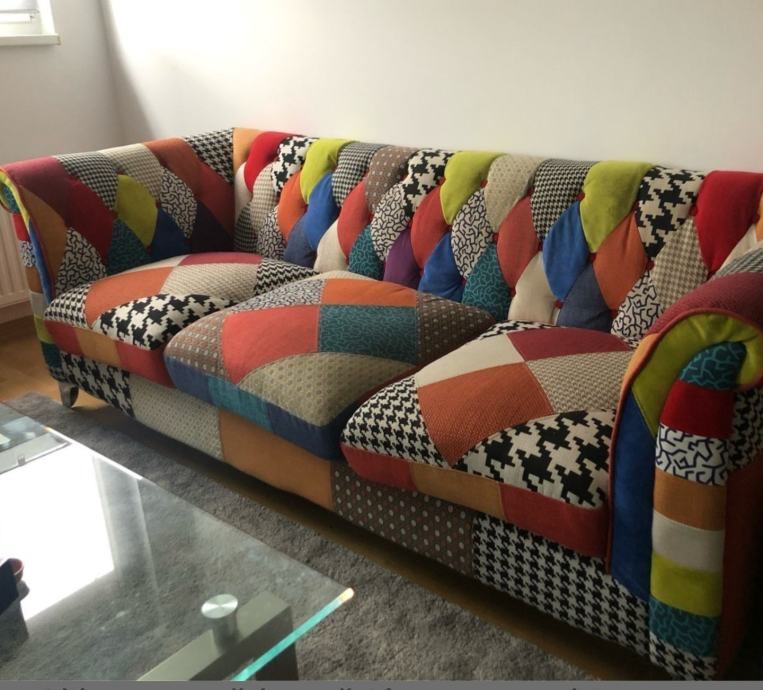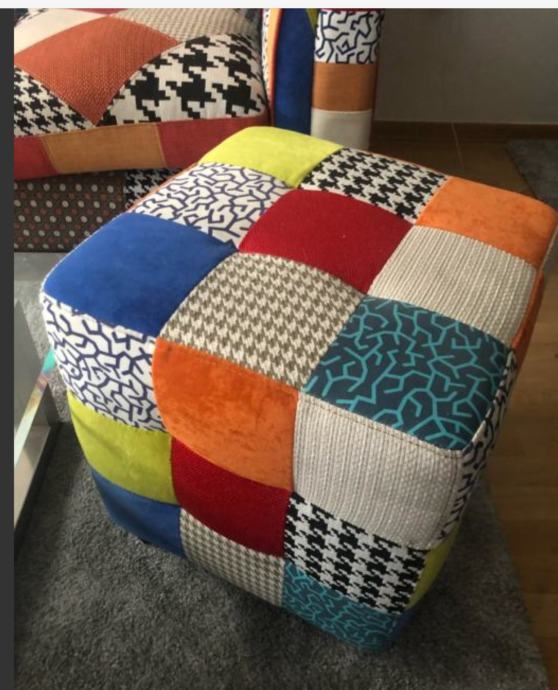 Prodajem korišten trosjed, fotelju i tabure - patchwork.