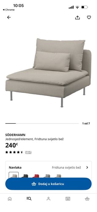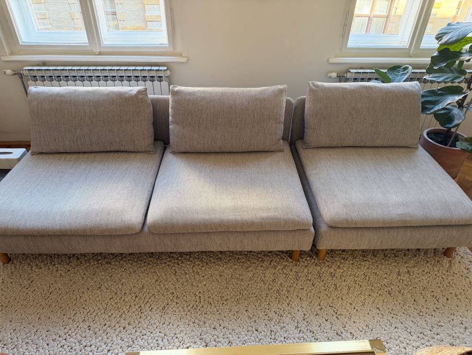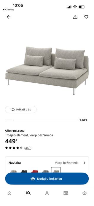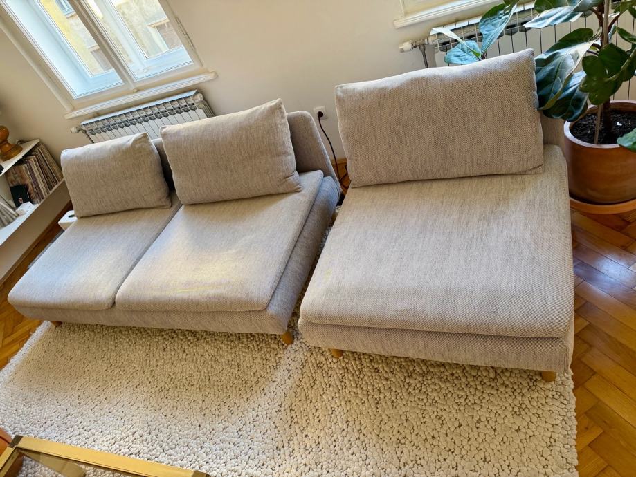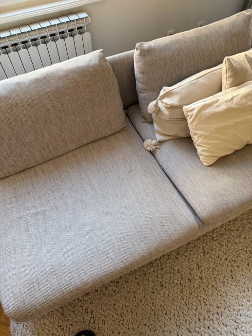 Prodajem sofu u odlicnom stanju. Koristena dvije godine. Postoji na poledjini jastuka ostecenje tkanine od navlake, ne vidi se