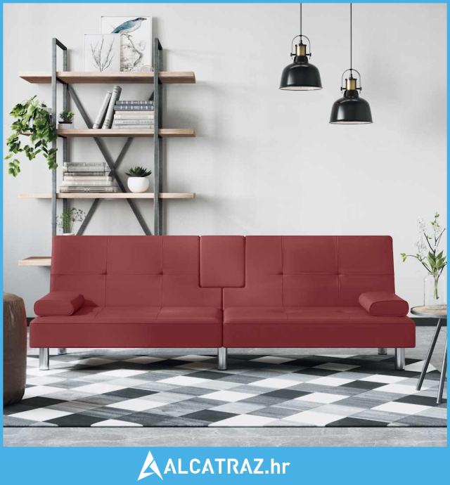 Kauč na razvlačenje s držačima za čaše boja vina umjetna koža - NOVO