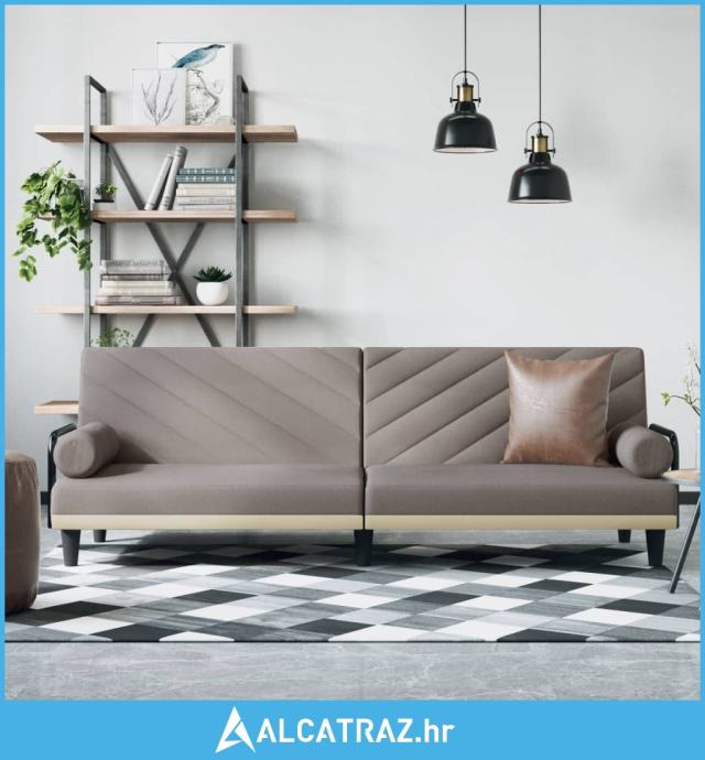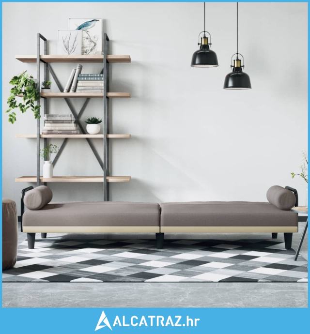 Kauč na razvlačenje s naslonima za ruke smeđesivi od tkanine - NOVO