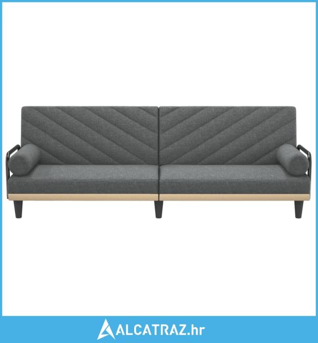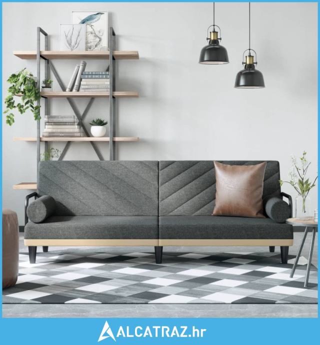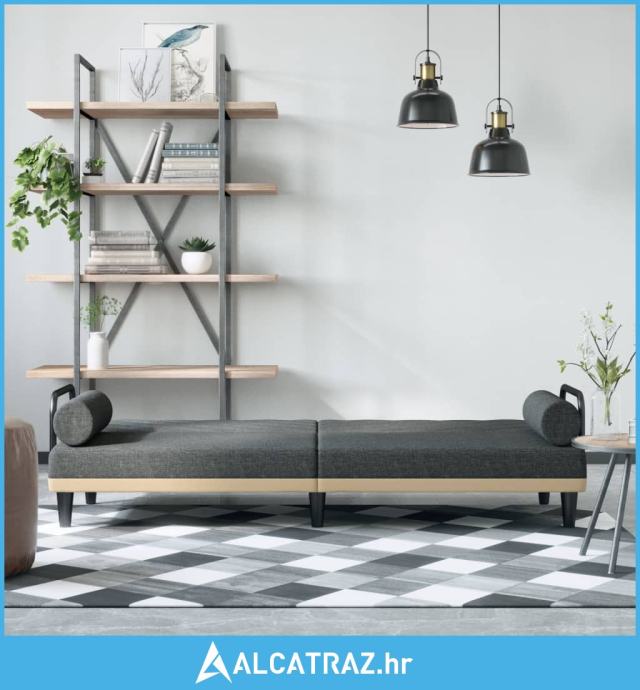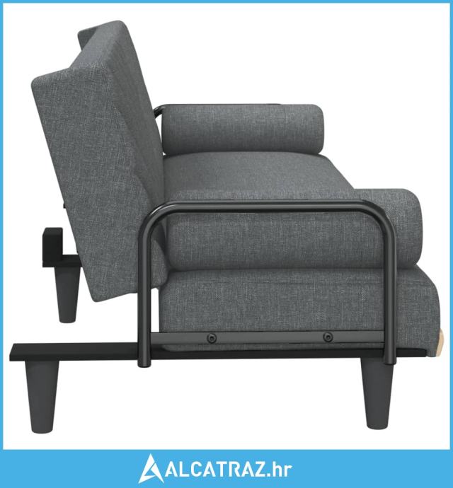 Kauč na razvlačenje s naslonima za ruke tamnosivi od tkanine - NOVO