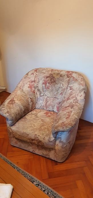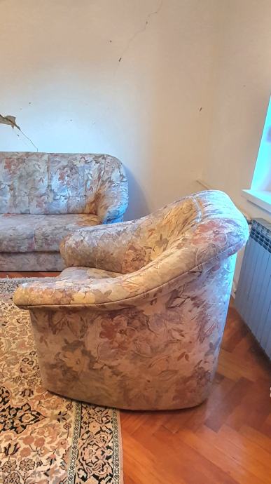 Prodaja dvosjeda, dvije fotelje i 3 taburea istog dezena.