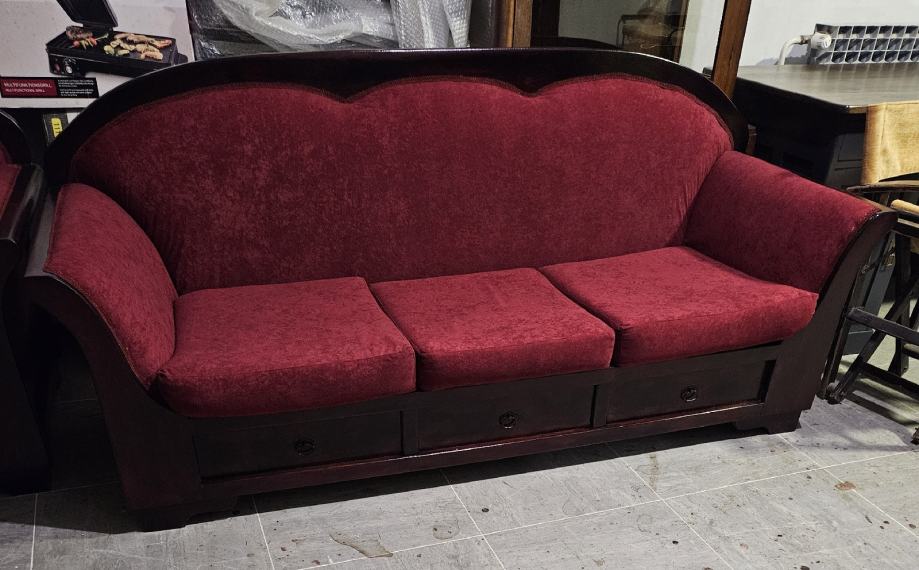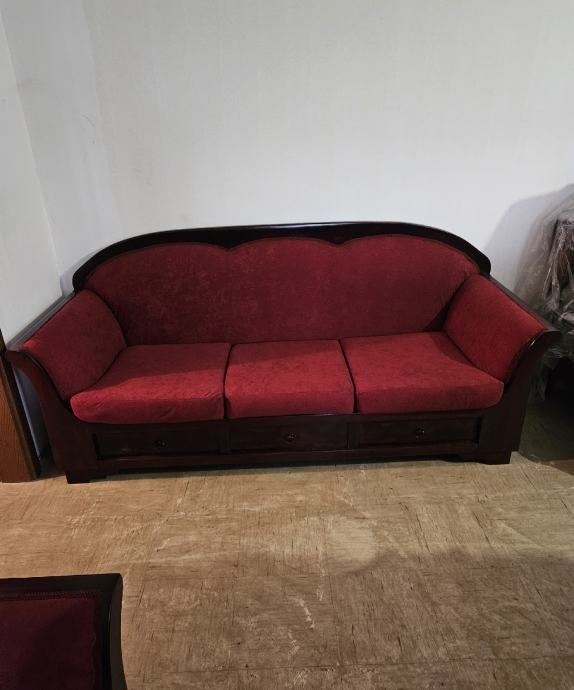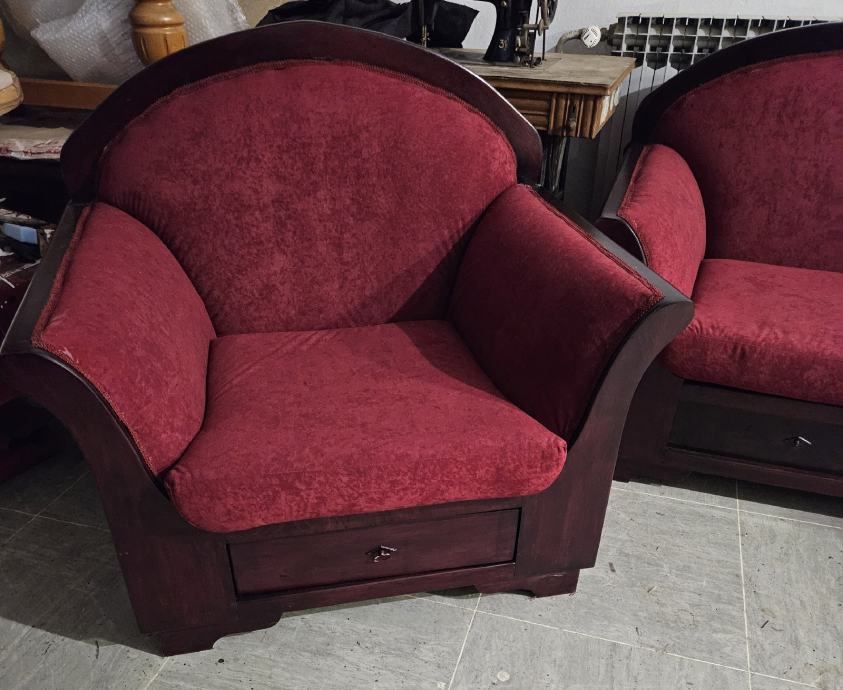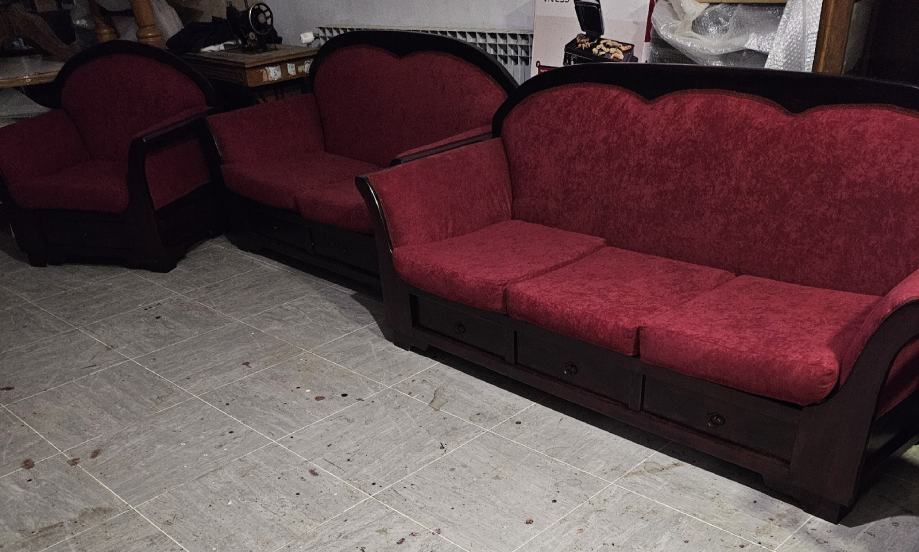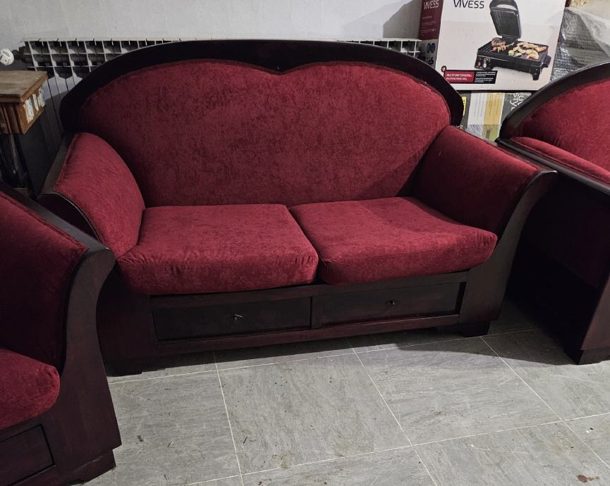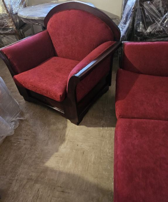 Prodajem trosjed,dvosjed i fotelju komplet sve je renovirano u kompletu drvo spužve i tkanina od renoviranja nije korišteno čeka novog vlasnika. Cijena po dogovoru.
