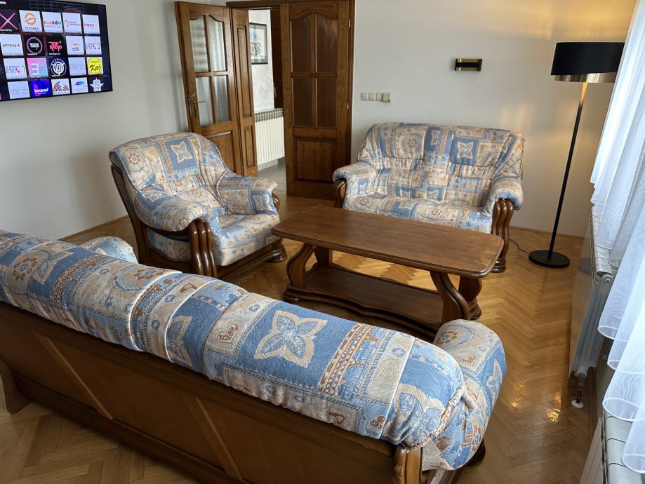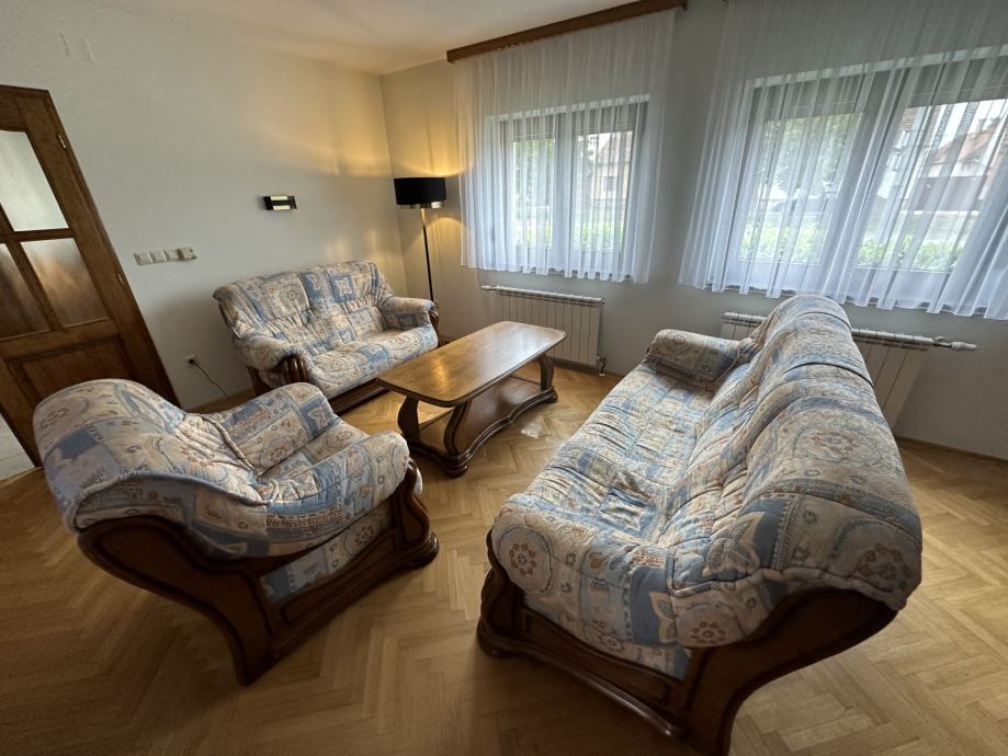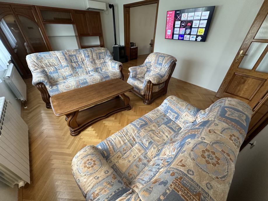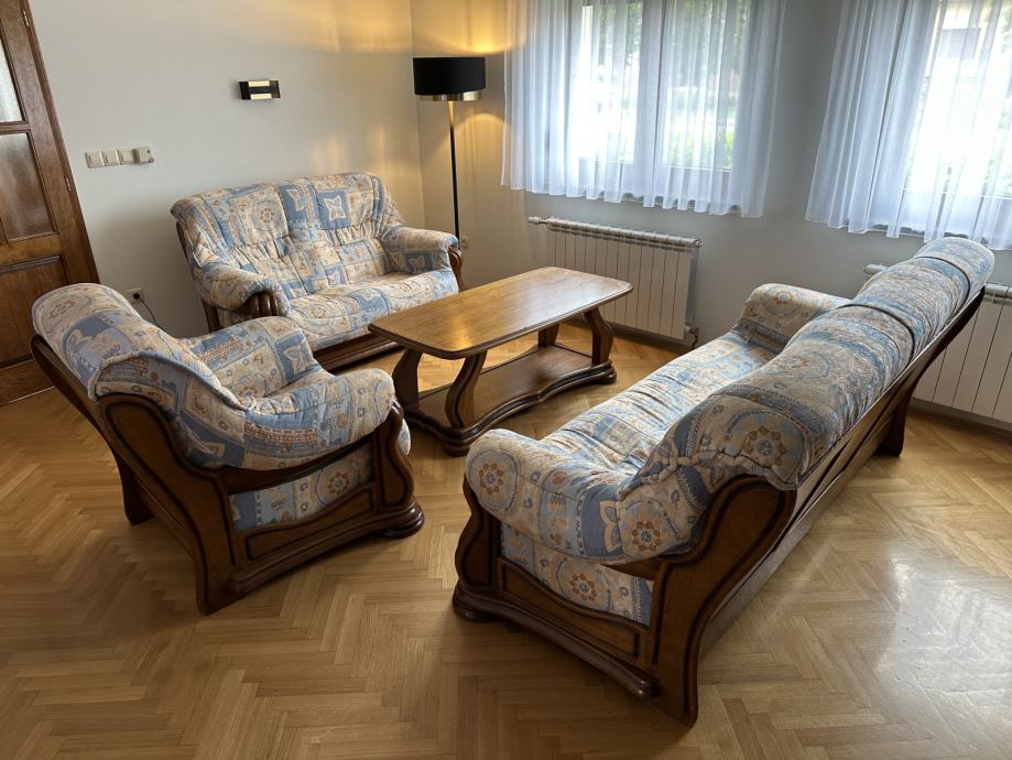 Prodaje se Kompletna sjedeća garnitura sa stolićem, od punog hrasta.