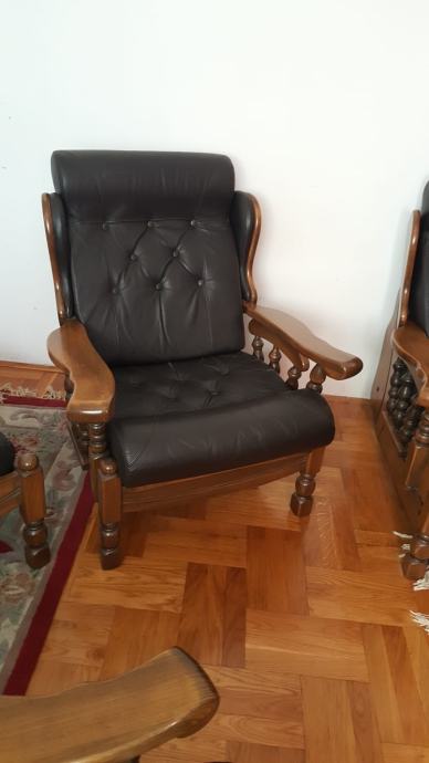 Prodajem kožnu sjedeću garnituru od punog drva. Garnitura sadrži trosjed sa krevetom na razvlačenje, dvije fotelje, tabure, stolić i fotelju za ljuljanje . Sve je jako očuvano. Cijena 2000 eur. Za sve informacije molim zvati i pisati isključivo na 098/907-6282.