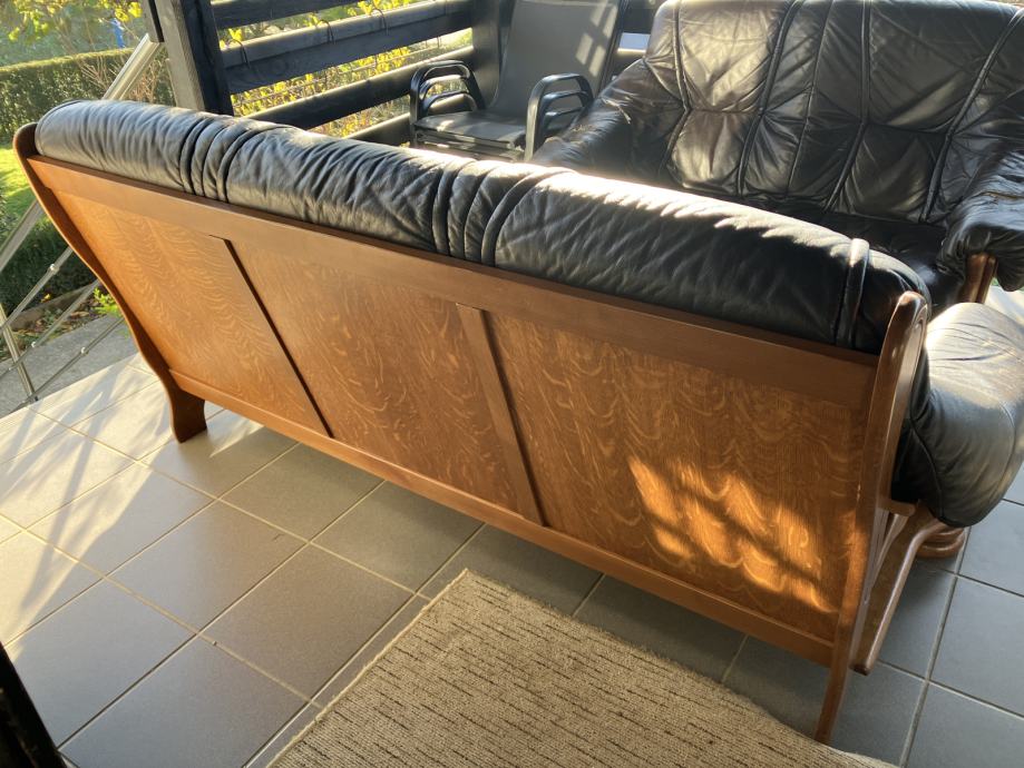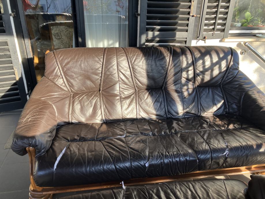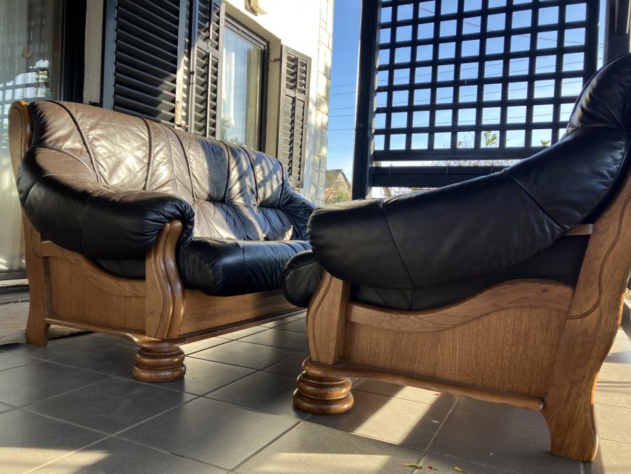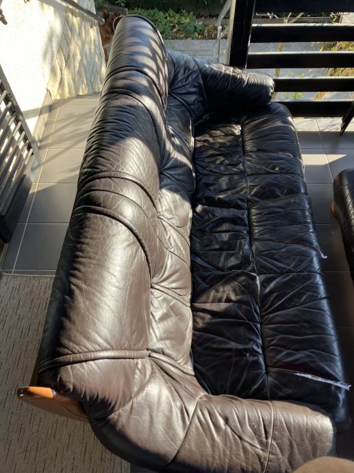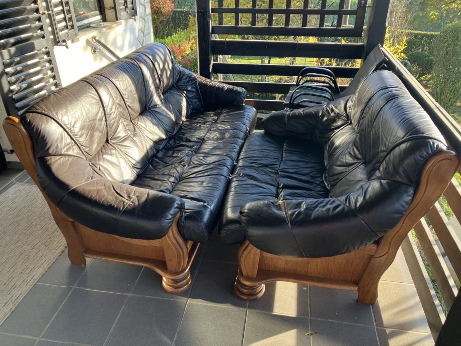Na prodaju kožni dvosjed i trosjed sa drvenom konstrukcijom, inače garnitura kvalitetne obrade i čvrste izrade, ne klima se, ne škripa, ali od puno korištenja (i pogrešno održavanje) popucala na dijelu šavova što se i vidi na fotografijama pa obratite pozornost.