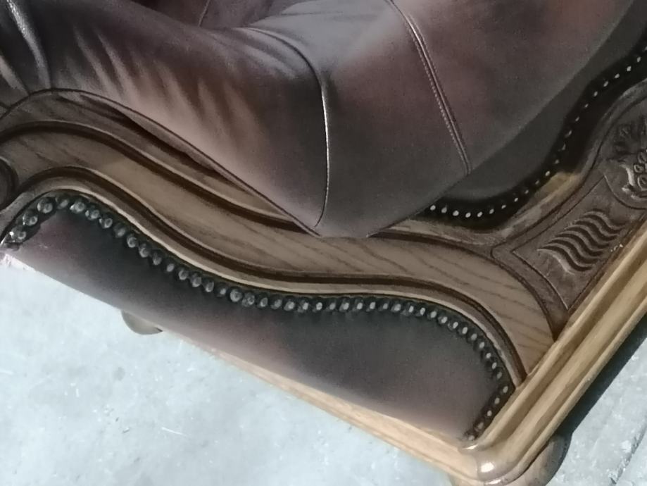 Velika luksuzna kožna grupa 3+2+1, visokog cjenovnog razreda, model ”KONUNG OLOF". Proizvedena u ŠVEDSKOJ koncem 2024. i kratko korištena ! Redovna cijena ca 7400 EUR. (original račun). Garnitura je takođe proizvedena u Skandinaviji te je, zaista, VRHUNSKE KVALITETE !!!