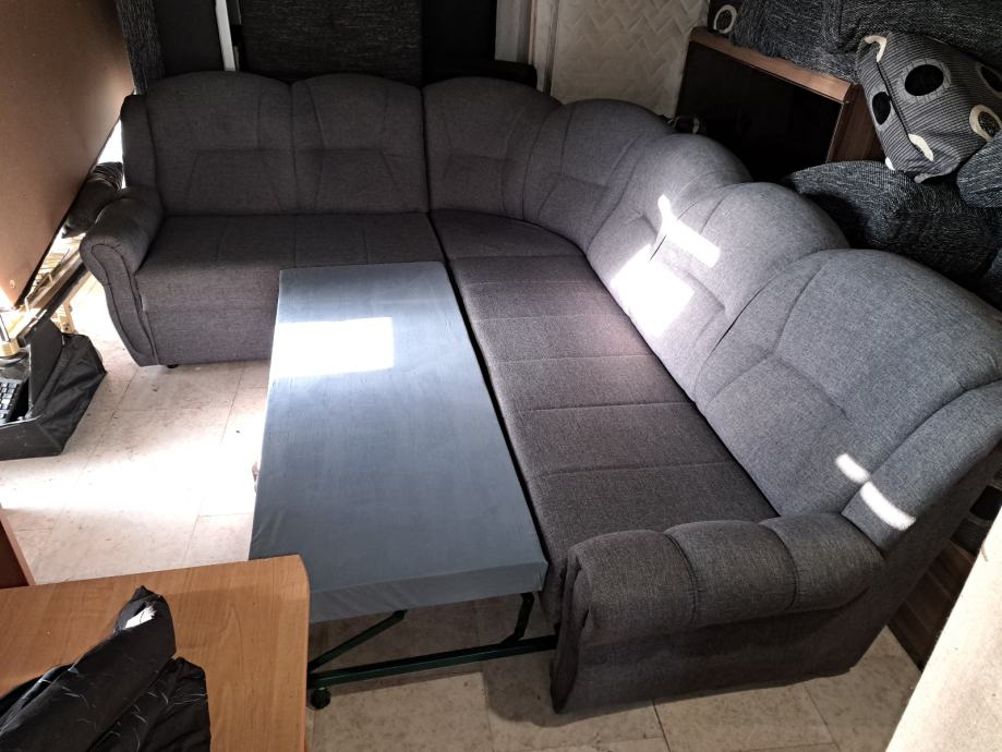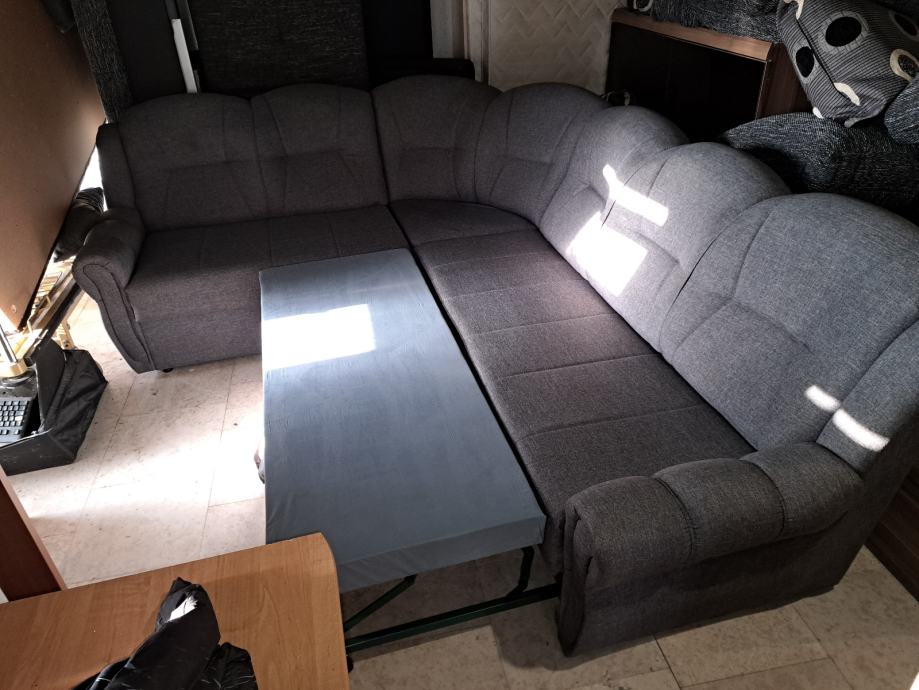 KUTNA GARNITURA SIVA,na razvlacenje gotovo nova nekoristena dim 280x230 cm,CIJENA 420 EURA