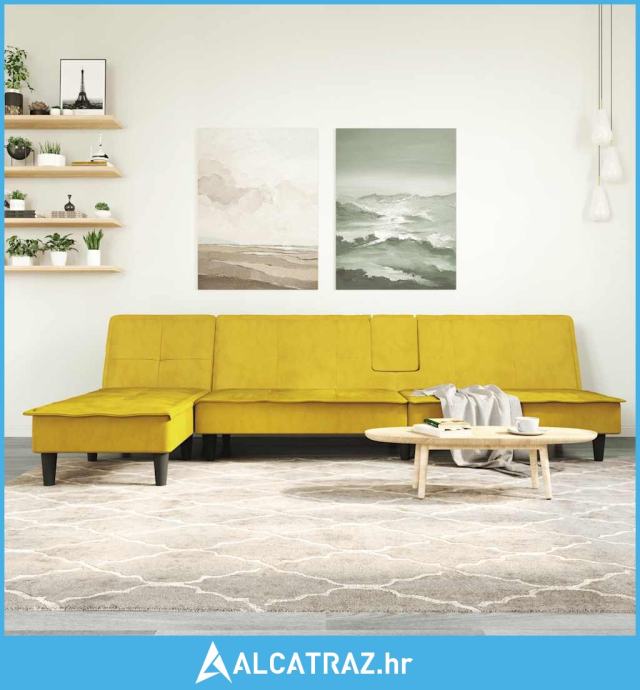 Kutna garnitura na razvlačenje žuta 255x140x70 cm baršunasta - NOVO