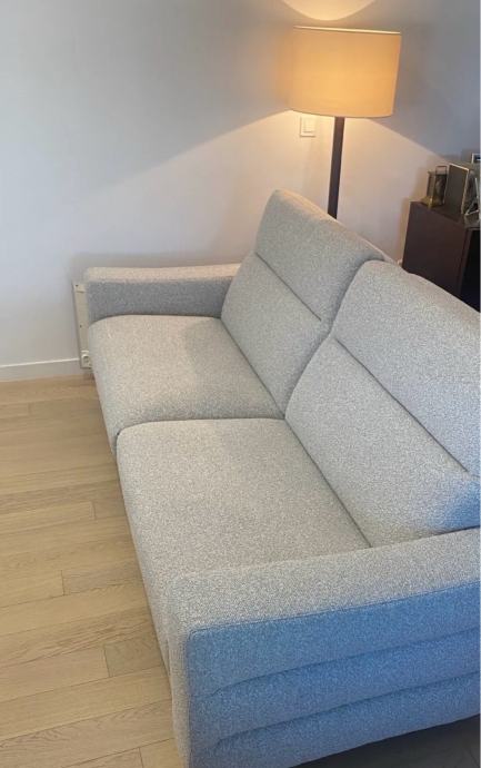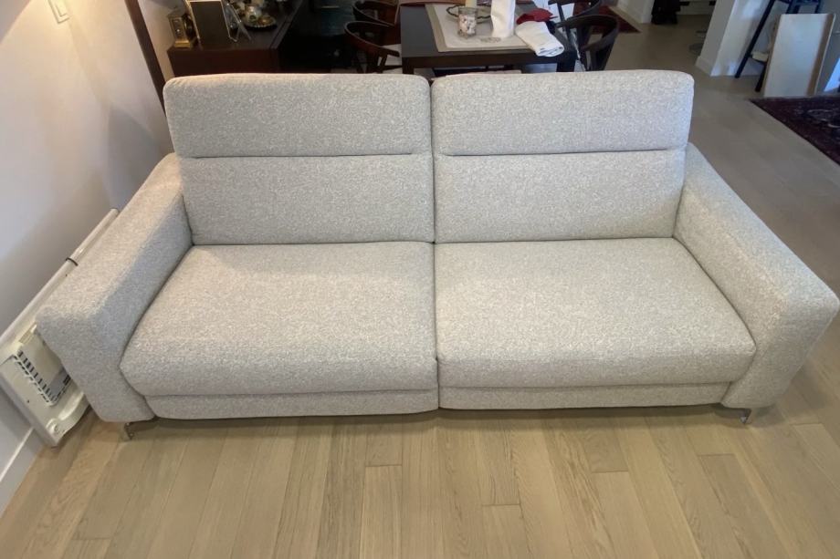 Prodaje se nova, skoro nekorištena sjedeća garnitura Natuzzi ( kauč i fotelja). U novouredjenom stanu je bila mozda mjesec dana. Fotografija fotelje je kataloska, zapravo je fotelja istog materijala i boje kao i kauč. Desno sjedište kauca je pomično što se može vidjeti iz fotografija. Račun prilozen. U kompletu se prodaju za manje od 50% cijene po kojoj je sve kupljeno.