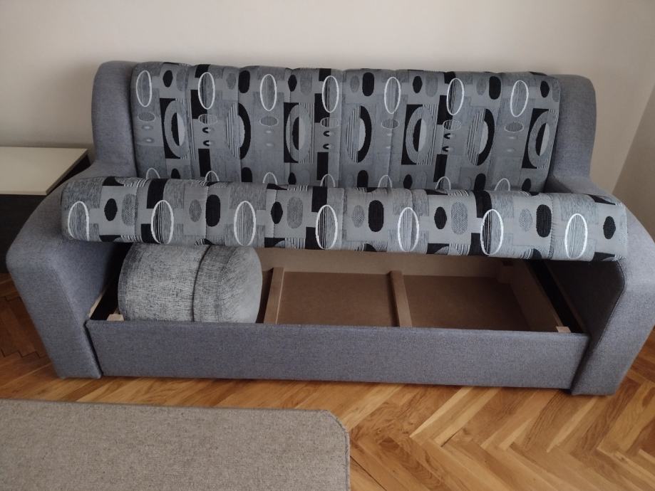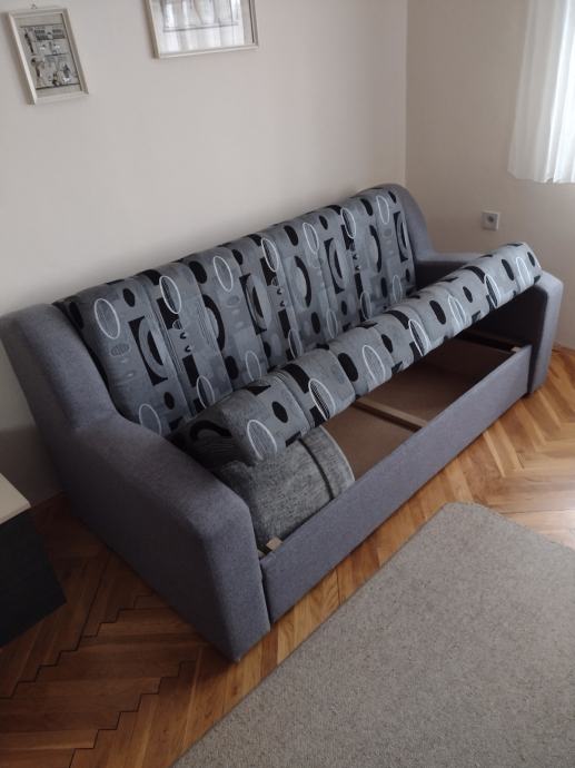 Trosjed i dvosjed na razvačenje u ležaj, sa spremištem za posteljinu.