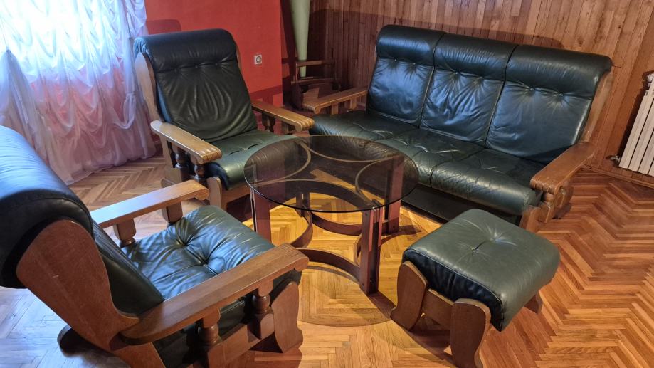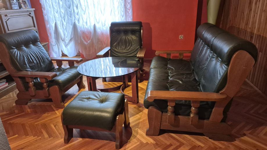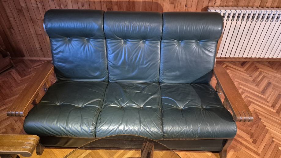 Materijal je prava koža tamnozelene boje i konstrukcija od masivnog drveta.