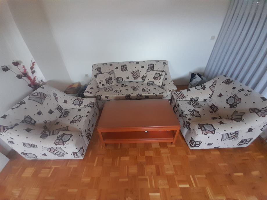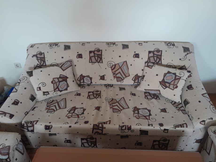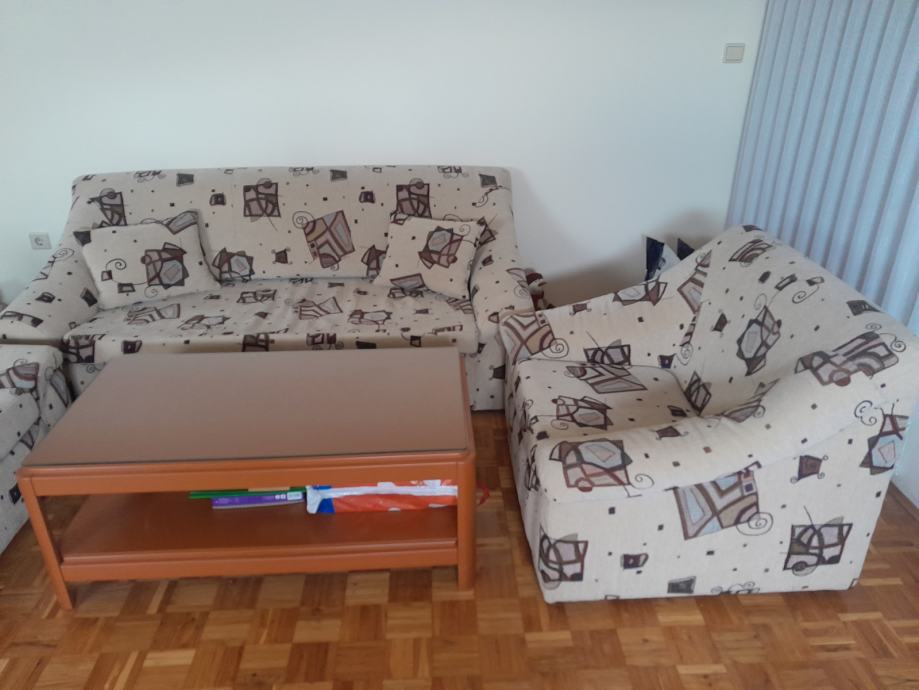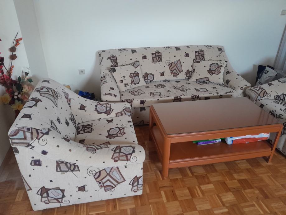 Prodajem trosjed na razvlačenje, dvije fotelje i stolić sa staklom u odličnom stanju.