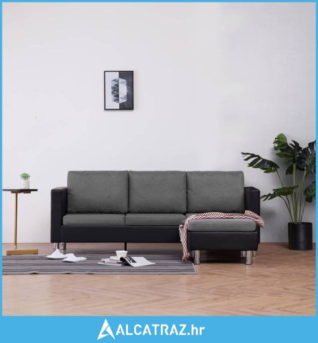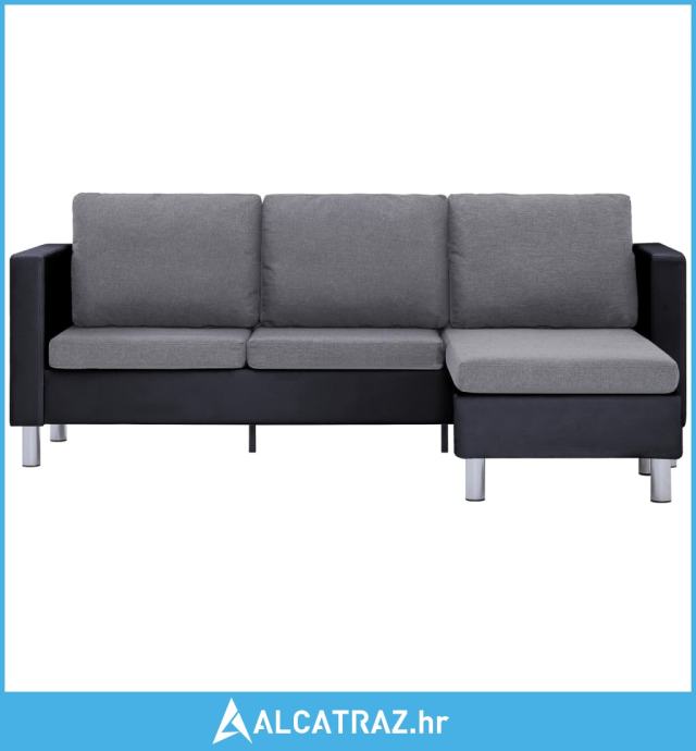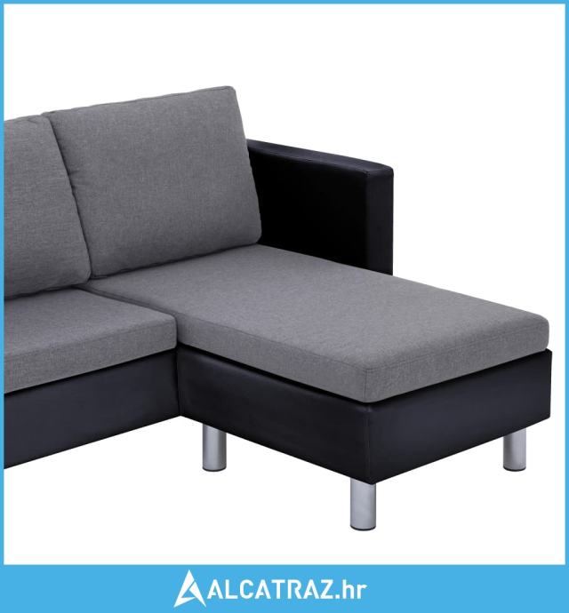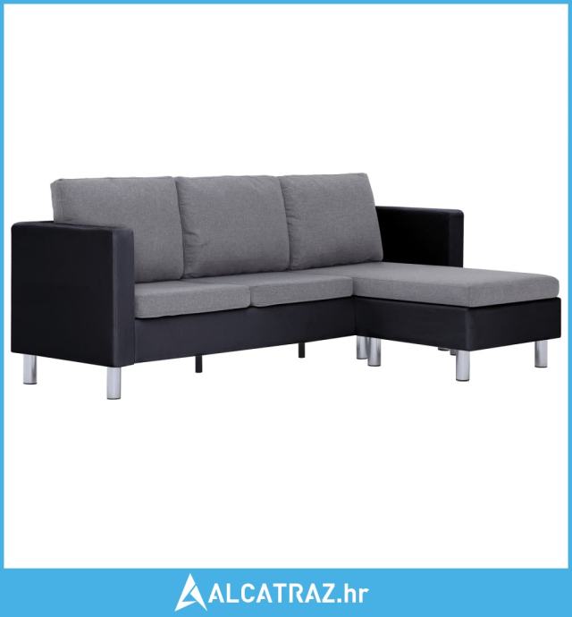 - Boja: Crna (sofa) + svjetlosiva (jastuci)