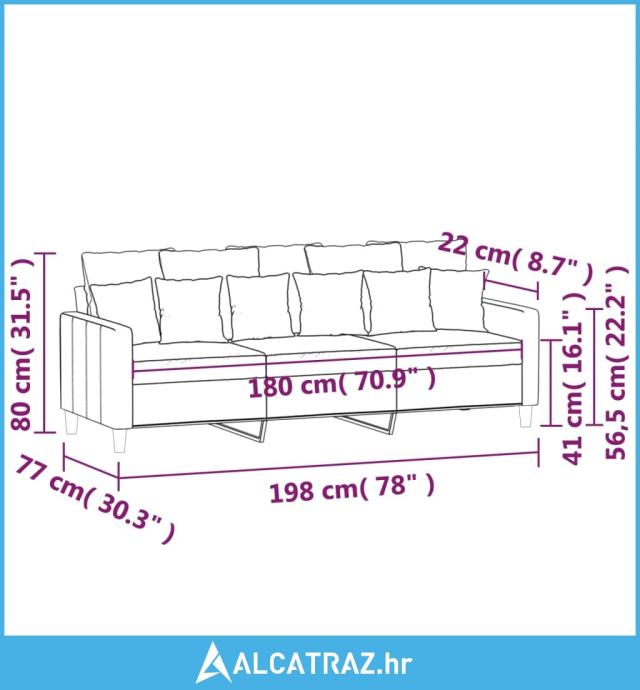 - Ukupne dimenzije: 198 x 77 x 80 cm (Š x D x V)
