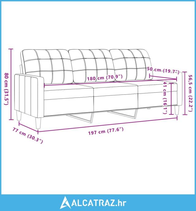 - Ukupne dimenzije: 197 x 77 x 80 cm (Š x D x V)