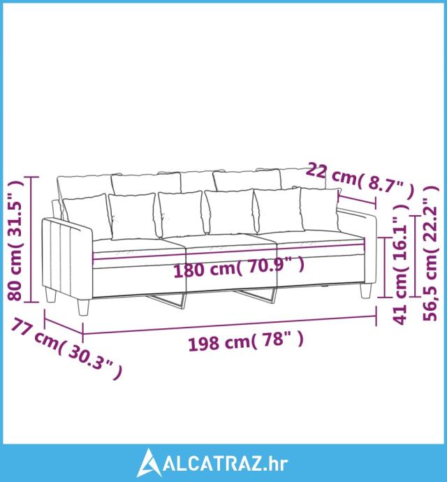 - Ukupne dimenzije: 198 x 77 x 80 cm (Š x D x V)