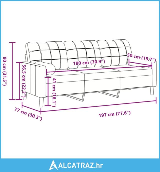 - Ukupne dimenzije: 197 x 77 x 80 cm (Š x D x V)