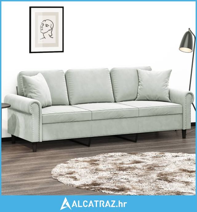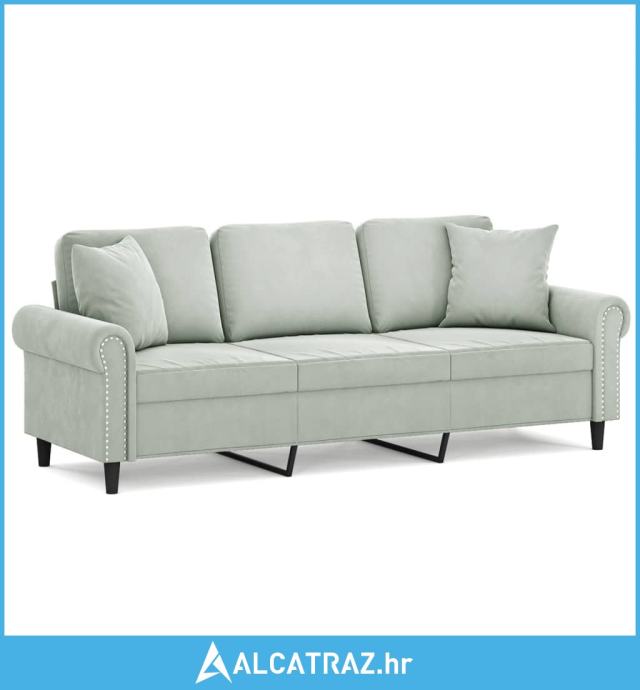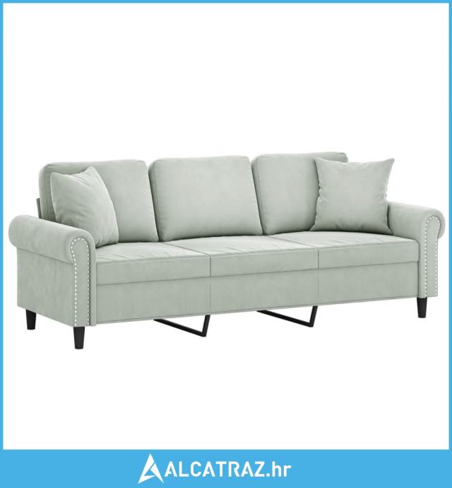 Trosjed s ukrasnim jastucima svjetlosivi 180 cm baršunasti - NOVO