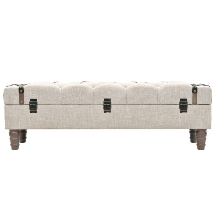 Kutija za odlaganje izrađena je od masivne jelovine. Ima podstavljeno sjedalo tapecirano modernom tkaninom i čvrste čelične noge. Tu je dovoljno prostora za čuvanje raznih predmeta izvan vidokruga, a na dohvat ruke. Zahvaljujući izdržljivoj ručki, klupa za odlaganje može se lako pomicati i postaviti bilo u koju prostoriju.