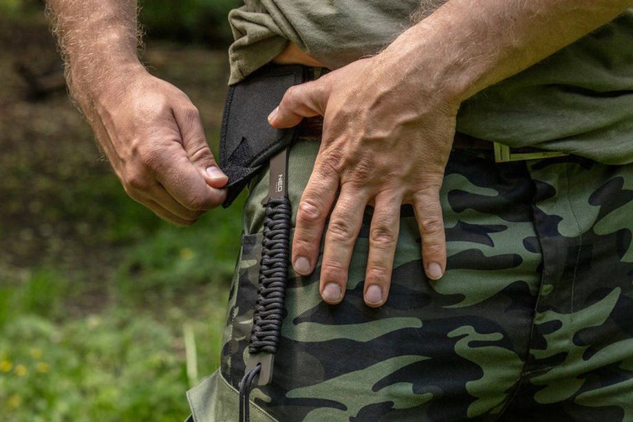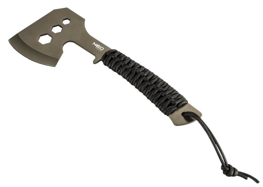 Kamperska sjekira 260 mm NEO 63-118 ima oštricu dužine 8 cm, izrađenu od 3Cr13 čelika. U glavi sjekire su smještena 3 ključa, dok je drška obložena paracord užetom.