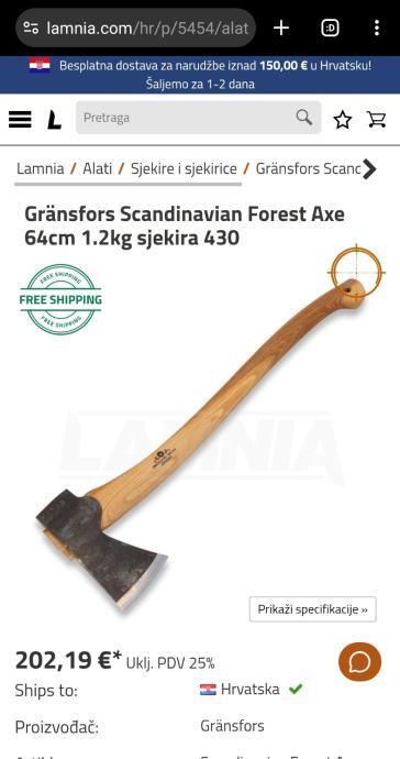 Najpoznatija Gränsfors Bruk sjekira Scandinavian Forest Axe. Ručni rad s potpisom majstora i knjižicom. Cijena je snizena jer ne mogu nac original kutiju sa kojom je dosla.