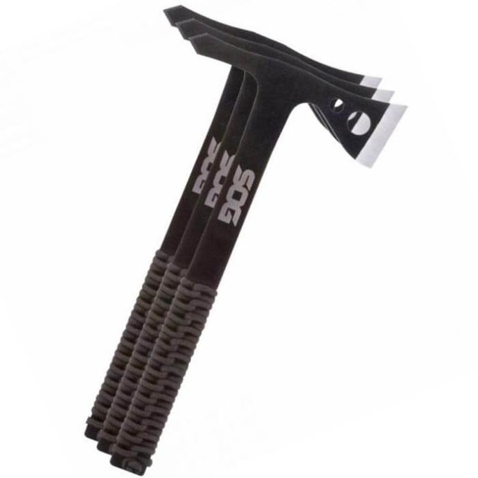 Set od tri bacačke SOG sjekire za natjecateljske svrhe može ponuditi mnoštvo zabave. Napravljene od nehrđajućeg čelika 3Cr13, omotane su paracord-om i odlikuju se izdržljivim crnim premazom. Iako su dizajnirani kao instrumenti natjecanja, mogu se koristiti i kao alat u neprilici. Najlonska futrola drži sve tri sjekire zajedno u kompaktnom pakiranju za siguran transport.
