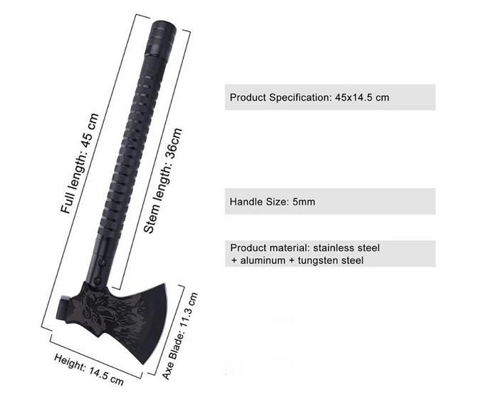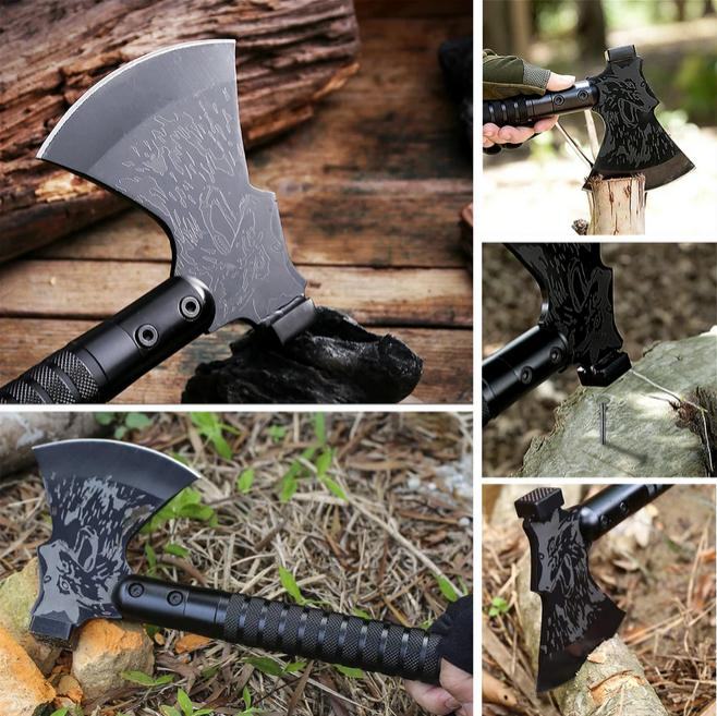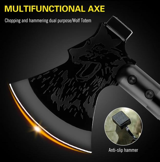 S nekoliko alata za preživljavanje sklopljenih u dršci, kao što su zviždaljka, kompas, kremeni pokretač vatre, nož i alat za čišćenje ribe, WOLF Camping Axe nije samo sjekira za CIJEPANJE DRVA, već i izvanredan alat za preživljavanje za ljubitelje prirode, posebno one koji vole preživljavanje.