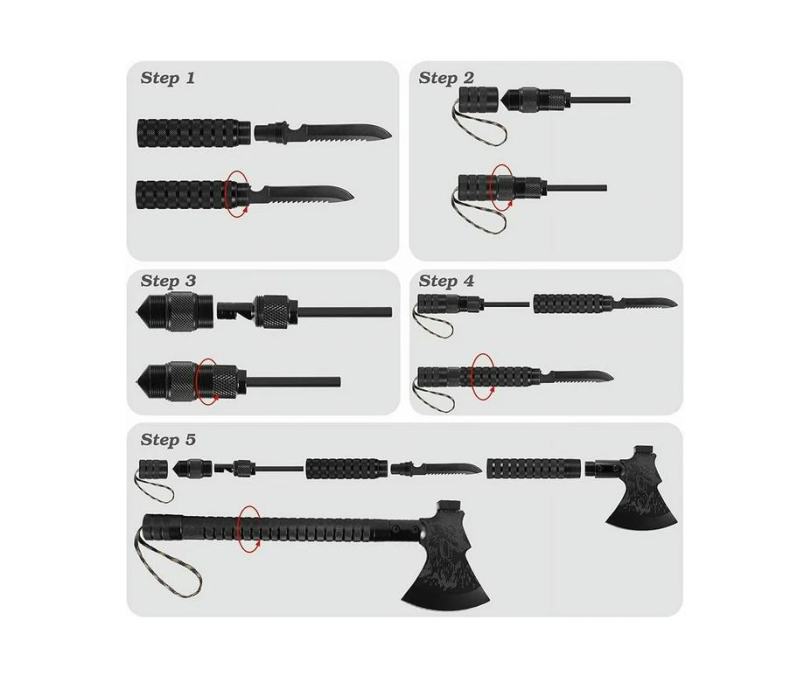 Ovo je odličan set i izvrstan dodatak vašoj opremi za kampiranje, lov, preživljavanje ili avanturu. Imajući sa sobom samo jedan alat - sjekiru, dobivate nekoliko neophodnih alata za prirodu.