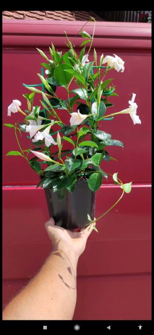 To je brzorastuća biljka i za kratko vrijeme moći će dati svijetle boje golim prostorima terase, impresivno se penjući duž posebnih držača (vrlo udobne su plastificirane mreže bilo koje veličine) dugih metara. La Mandevilla je pravi stručnjak za penjanje.